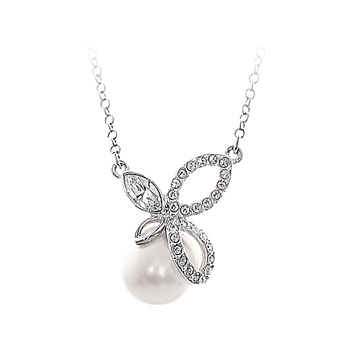 진주와 스와로브스키로 장식해 화사하게 반짝이는 실버 목걸이입니다.