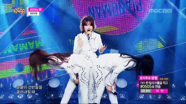 여성 4인조(솔라, 문별, 휘인, 화사)로 이루어진 괴물 걸그룹 마마무는 신곡 '피아노맨'에서 특유의 폭팔적인 가창력과 리드미컬한 피아노 멜로디, 그리고 피아노를 치는 듯한 퍼포먼스가 세련되게 조화를 이루며 타 걸그룹과의 차별화를 선언, 시청자들에게 강렬한 인상을 남겼다.