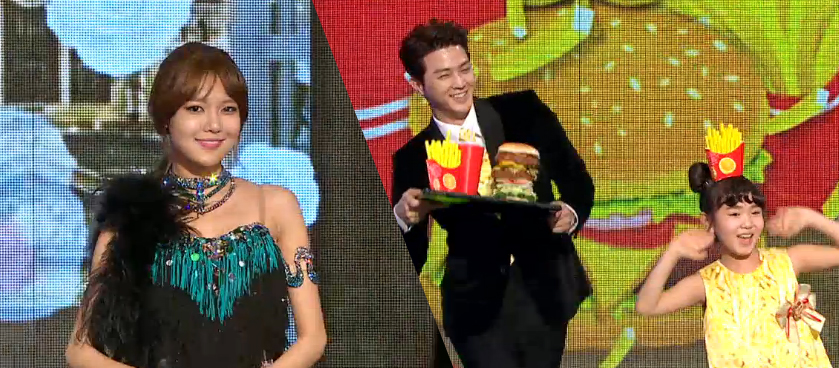 까탈레나 특유의 독특한 헤어아이템으로 이번엔 햄버거가 등장! 포테이토를 머리에 얹은 김지영이 앙증맞은 춤으로 엄마미소를 자아내게 만들더니, 이윽고 깜짝 등장한 김지훈이 훤칠한 알바생 포스로 "여기 햄버서 세트 추가요"를 부르는 미남 포스를 풍겼다.