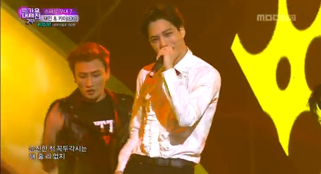 태민과 카이가 찰떡호흡으로 환상적인 콜라보 무대를 선보였다.