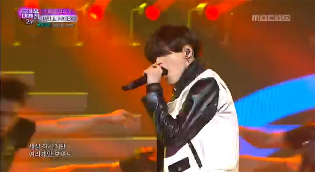 31일(수) 방송된 <2014 MBC 가요대제전>에서 샤이니의 태민과 EXO의 카이가 완벽한 호흡으로 'Pretty Boy'를 열창했다. 동갑내기 친구인 태민과 카이는 서로 다른 매력을 선보이며 무대에 등장했지만 이내 완벽한 호흡을 보였다.