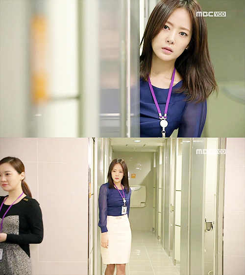 24일(토) 방송된 MBC 주말연속극 <장미빛 연인들> 29회에서는 세라(윤아정 분)는 자신이 해고 된 이유가 회장의 애인이었기 때문에 해고 된 것이라는 소문을 듣게 된다. 이 장면에서 윤아정은 네이비 컬러의 블라우스와 함께 사이드 주름으로 디테일을 더한 스커트를 착용해 눈길을 끌었다. 윤아정이 착용한 이 블라우스는 미니멈의 제품으로 글로시한 솔리드 패턴에 주름 라인을 더해 볼륨감을 더한 제품이다.