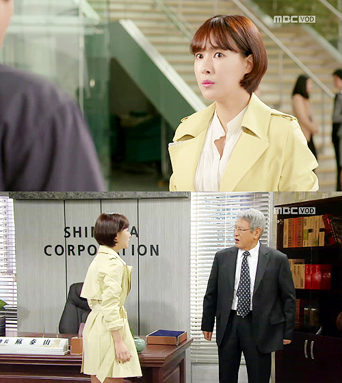 이 장면에서 김윤서는 여성스러운 느낌을 주는 차이나 카차 셔츠와 함께 화사한 레몬 컬러의 트렌치 코트를 착용해 눈길을 끌었다. 김윤서가 착용한 이 코트는 스위트 숲의 제품으로 봄에 꼭 어울리는 상큼한 레몬 색상으로 스타일을 화사하게 돋보이게 해 주는 여성스러운 라인의 트렌치 코트이다.