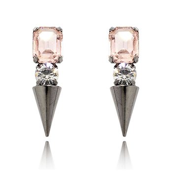 은은한 핑크 스퀘어 스톤과 원뿔 스터드로 유니크한 느낌을 주는 귀걸이입니다.