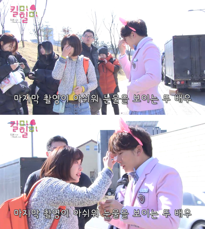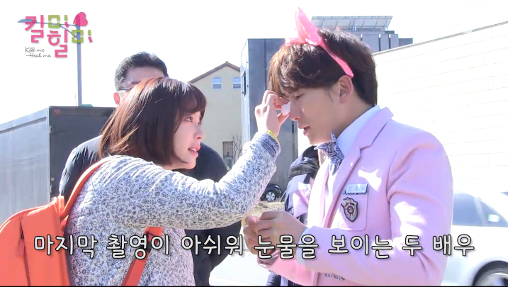 하지만 끝내 두 배우는 마지막 기념 사진촬영 전에 눈물을 흘리며 <킬미, 힐미>의 마지막 촬영에 대한 아쉬움을 드러냈고, 이내 서로를 다독이면서 눈물을 닦아줬다고.