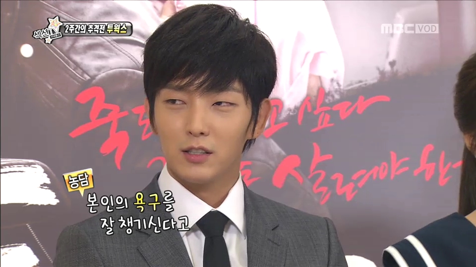 류수영이 스킨십과 뽀뽀 유도 등 사랑을 지키기 위한 방법들을 공개하자 극 중 박하선의 과거 연인이자 사랑의 라이벌로 등장하는 이준기는 "본인의 욕구를 잘 챙기신다고."라며 돌직구를 날려 웃음을 자아냈다.