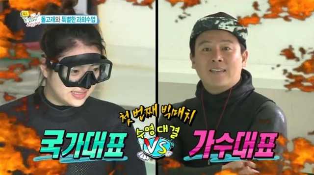 26일에 방송된 MBC 예능프로그램 <띠동갑내기 과외하기>에서는 수영선수 정다래와 이재훈이 수영대결을 펼치는 모습이 그려졌다.