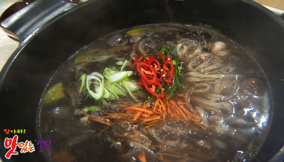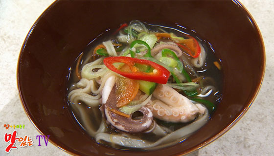 칼국수 국물에 주꾸미 먹물을 넣으면