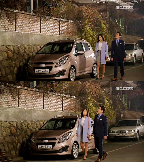 이 장면 윤아정은 부드러운 바이올렛 색상의 롱 코트와 함께 스커트 부분에 격자 패턴으로 포인트를 준 원피스를 함께 매치해 눈길을 끌었다. 윤아정이 착용한 이 원피스는 아나 카프리의 제품으로 하늘하늘한 소재로 제작되어 여성스러운 느낌을 주는 블라우스와 격자 패턴과 자수 디테일로 여성스러운 느낌을 주는 스커트가 이어진 원피스를 착용해 단정하면서도 깔끔한 스타일을 완성했다.