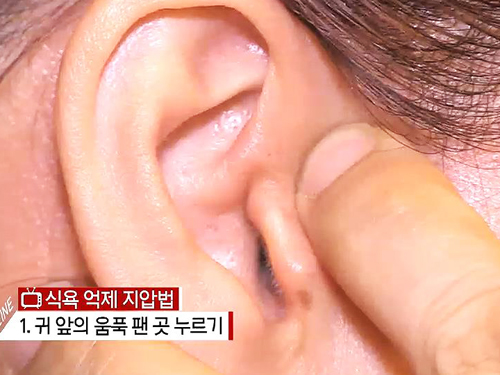 멈출 수 없는 야식을 참을 수 있는 식욕 억제 지압법이 있는데 먼저 귀 앞의 움푹 팬 곳을