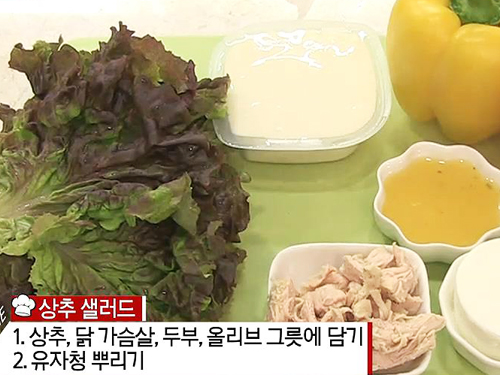 야식을 끊을 수 없다면 건강하게 먹는 방법도 있는데 먼저 상추, 닭 가슴살, 두부, 올리브를