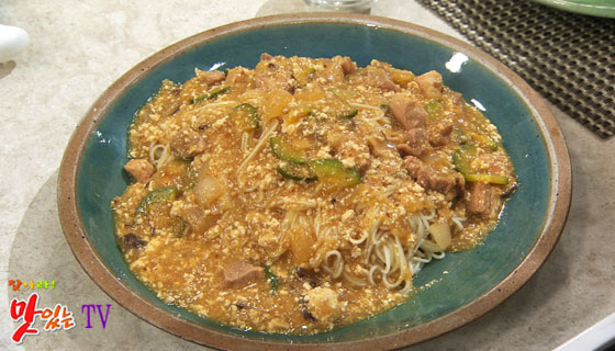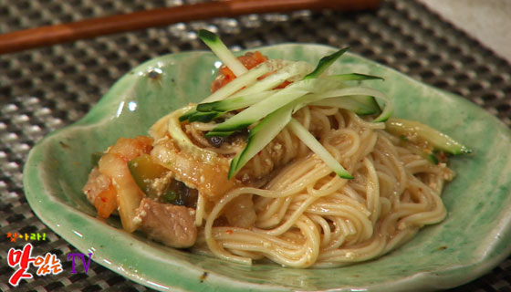 강된장을 국수에 올려 비벼 먹으면 떨어진 입맛 돋우는 새로운 강된장 요리 완성!