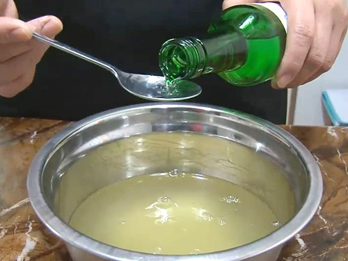 나무젓가락으로 저어주면 보습의 원료 청국장 실이 완성되는데 여기에 새로운 정제수와