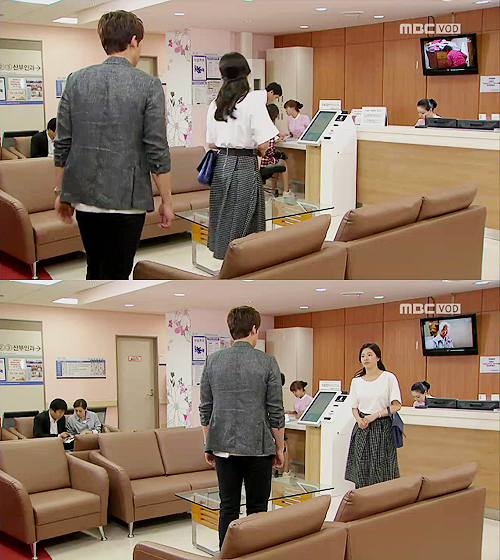 이 장면에서 박하나는 박시하게 떨어지는 라인이 여성스러운 느낌을 주는 블라우스와 함께 무릎까지 길게 떨어지는 주름 스커트를 착용했다. 박하나가 착용한 이 스커트는 나이스크랍의 제품으로 무릎까지 길게 떨어지는 기장과 촘촘한 격자 패턴으로 복고풍의 느낌을 더한 스커트이다.