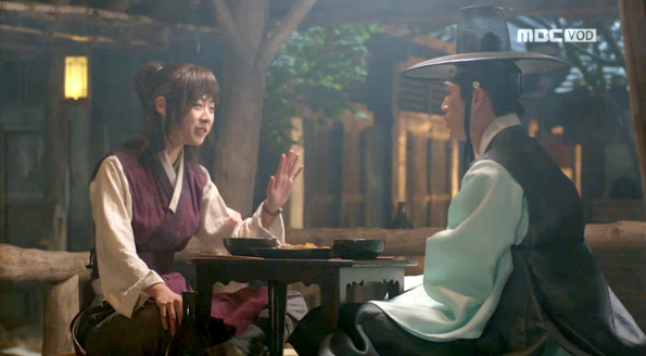 주원은 술을 벌컥벌컥 들이키고 안주를 손으로 집어먹는 등 털털한 모습을 보이는 정명의 모습에 황당해하면서도 정명에게 “내가 미리 알았더라면 낭자의 손을 잡는다던가..하는 걸례는 저지르지 않았을 것”이라며 지난 일을 부끄러워한다.