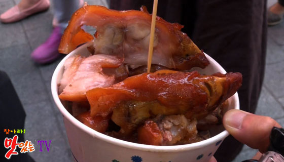 컵족발이라고 들어봤어? 신기하게 쇼핑하면서 먹으라고 족발을 컵에 담아주는데