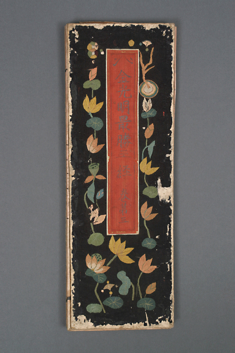 | 백지묵서금광명최승왕경 ©국립중앙박물관 인목대비가 광해군 14년(1622)에 손수 필사한 사경으로 부처님의 말씀, 즉 가르침을 뜻하는 법보(法寶)로, 친정아버지와 아들 영창대군의 명복을 빌기 위하여 만든 것이다. |