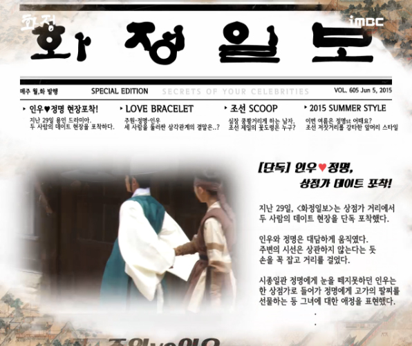 한편 이번에 포착된 강인우 도령과 정명공주는 매주 월, 화요일 <화정>을 통해 함께 호흡을 맞추며 열애설이 번진 것으로 추측됩니다. 이상 긴급 보도의 iMBC였습니다.