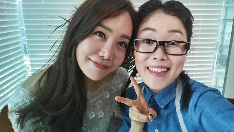 공개된 사진 속 브이자를 하고 웃고 있는 박슬기 옆에는 환하게 웃고 있는 김정은이 함께 했다.
