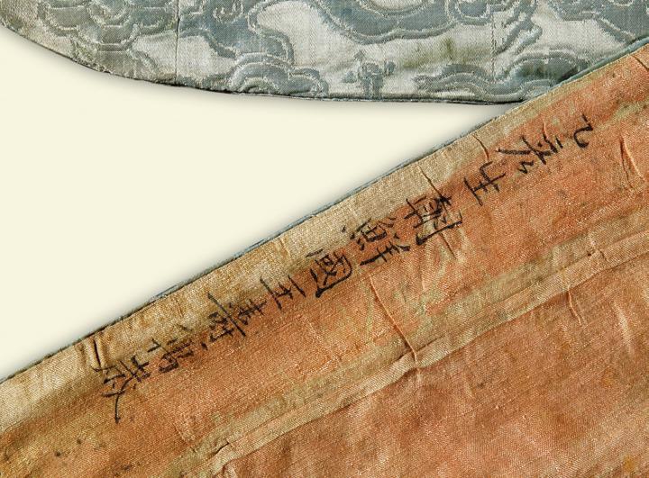 | 광해군 옷(안섶명문) ©문화재청 옷의 안자락에는 '을해생조선국왕수만세(乙亥生朝鮮國王壽萬歲)'라는 글씨로 광해군의 만수무강을 기원하고 있다. |