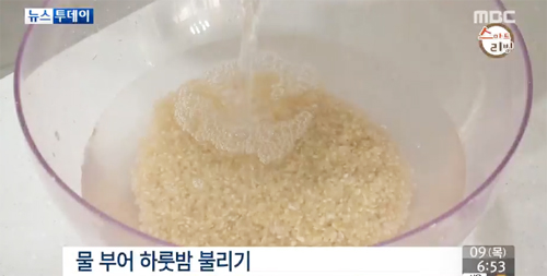 현미를 물에 여러 번 씻은 뒤 물을 부어 하룻밤 불려준다.