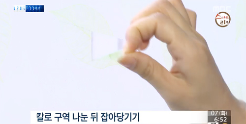한 번에 뜯기 어려울 경우에는 칼로 살짝 그어 구역을 나눈 뒤 윗부분을 잡고 아래로