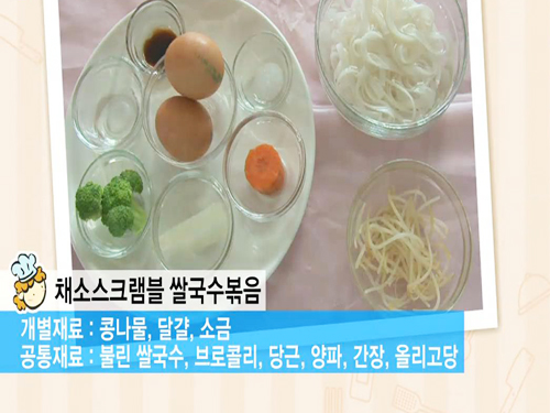 콩나물, 달걀, 소금, 불린 쌀국수, 브로콜리, 당근, 양파, 간장, 올리고당