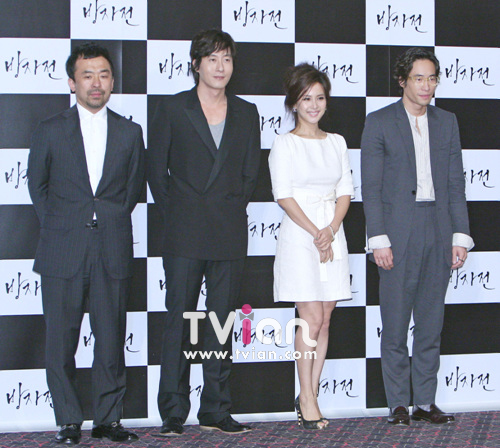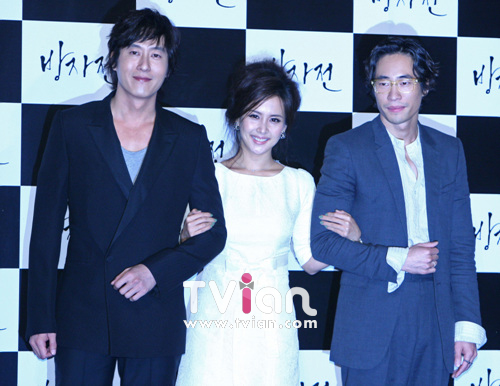 25일(화) 오후 2시 왕십리 CGV에서 영화 <방자전>(제작 바른손/시오필름, 제공/배급 CJ엔터테인먼트, 각본/감독 김대우, 개봉예정 6월 3일)의 언론배급 시사회와 기자간담회가 열렸다. <음란서생> 김대우 감독의 두 번째 야사 <방자전>은 고전 로맨스 ‘춘향전’이 춘향을 사랑한 방자에 의해 미화된 이야기라는 전제로 재창조된 영화로, 이날 시사회 상영 이후 마련된 기자간담회에는 김대우 감독과 배우 김주혁, 류승범, 조여정이 참석해 질의응답 시간을 가졌다. 영화의 상영 전 진행된 무대인사에서는 향단 역을 맡은 배우 류현경도 무대에 올라 객석에 인사를 전했다.