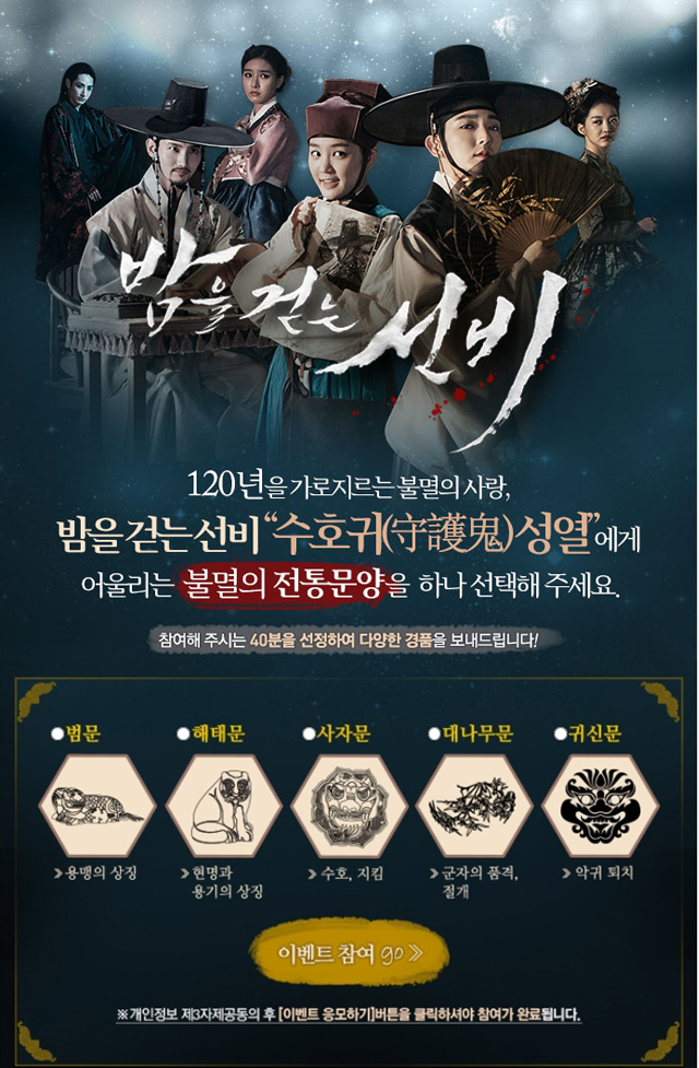 ☞ MBC <밤을 걷는 선비> '불멸의 전통문양' 이벤트 참여하러 가기