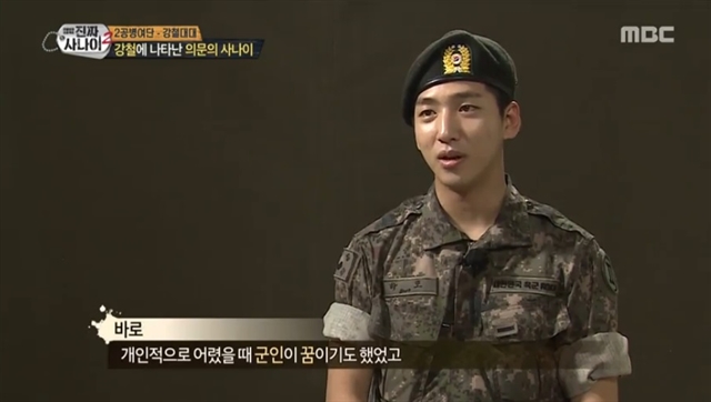 바로는 인터뷰를 통해 “개인적으로 어렸을 때 군인이 꿈이었다.”며 기대감을 드러냈고, 사전 인터뷰에서도 “군인의 정신이 너무 멋있다. 형들이 군대 생활 진짜 잘할 것 같다고 말했다.”고 밝히며 의욕 가득한 모습을 보였다.