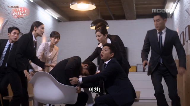 회의 도중 갑작스럽게 복통을 호소하며 쓰러진 이천.