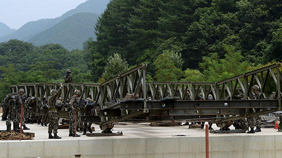 '장간 조립교'란 세계 2차 대전에서도 사용 되던 철제 다리로, 자재 하나당 300kg에 육박하는 무게를 자랑한다. 공병들 사이에서도 최고로 불리우며 악명 높은 훈련으로 불리고 있다.