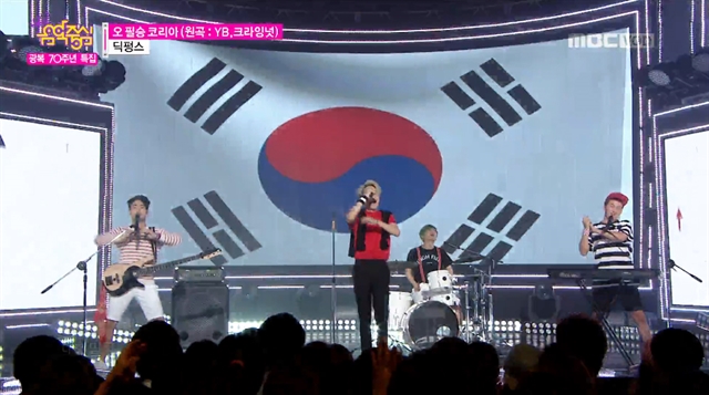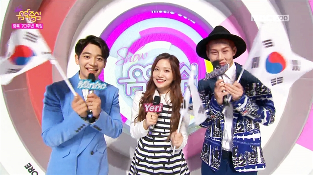광복 70주년 특집 무대로 꾸며진 15일 MBC <쇼! 음악중심>은 1945년부터 2005년까지의 인기 대중가요들을 아이돌 그룹들이 재해석해 부르는 특별한 무대로 꾸며졌다.