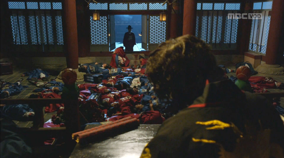 하지만 혜령의 아버지 철중(손종학)은 귀에게 오히려 굽실거릴 뿐이었다. 그는 피로 낭자한 대전에 신하들이 학살당한 채 죽은 모습을 보자 잔뜩 겁을 먹은 얼굴을 했고, 귀는 그를 향해 “중전의 일은 안됐다. 내가 그러려던 것은 아닌데”라며 변명을 시작했다.