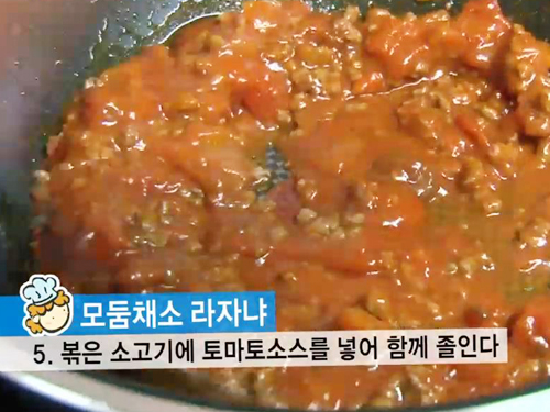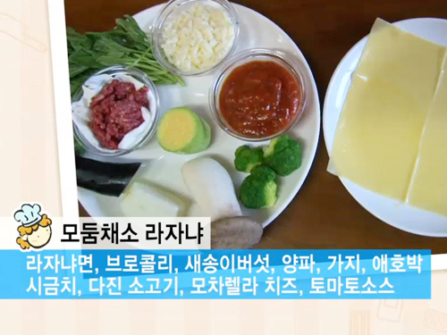 라자냐면, 브로콜리, 새송이버섯, 양파, 가지, 애호박, 시금치, 다진 소고기,