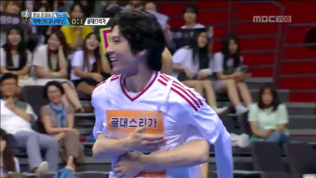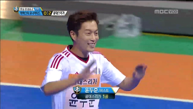 남자 풋살경기에서 골대스리가의 윤두준과 레오가 눈부신 활약을 했다.