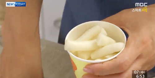 먼저, 종이컵 2컵 분량의 떡볶이 떡을 준비한다.