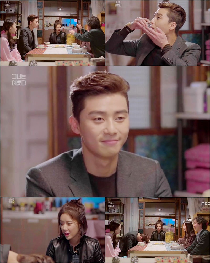 22일 방송된 MBC 수목미니시리즈 <그녀는 예뻤다> 11회에서 성준(박서준)은 혜진(황정음)의 정체를 알게 되자 거칠 것 없는 ‘적극구애’에 나서 시청자들의 가슴에 설렘을 선사했다. 특히 혜진의 부모에게 점수 따기 프로젝트를 가동한 성준의 앙큼한 모습은 여심을 간지럽히며 화제를 불러 모았다.
