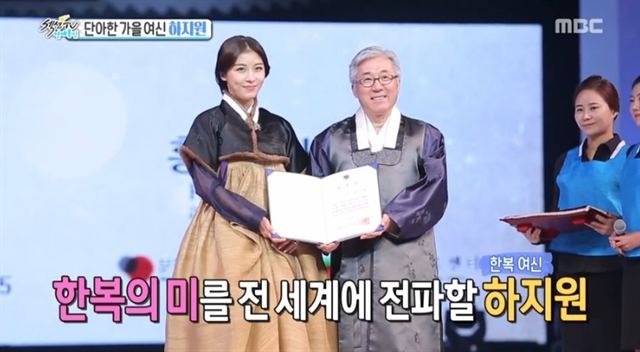25일에 방송된 MBC 예능프로그램 <섹션TV 연예통신>에서는 한복 홍보대사로 위촉된 하지원의 모습을 공개했다.