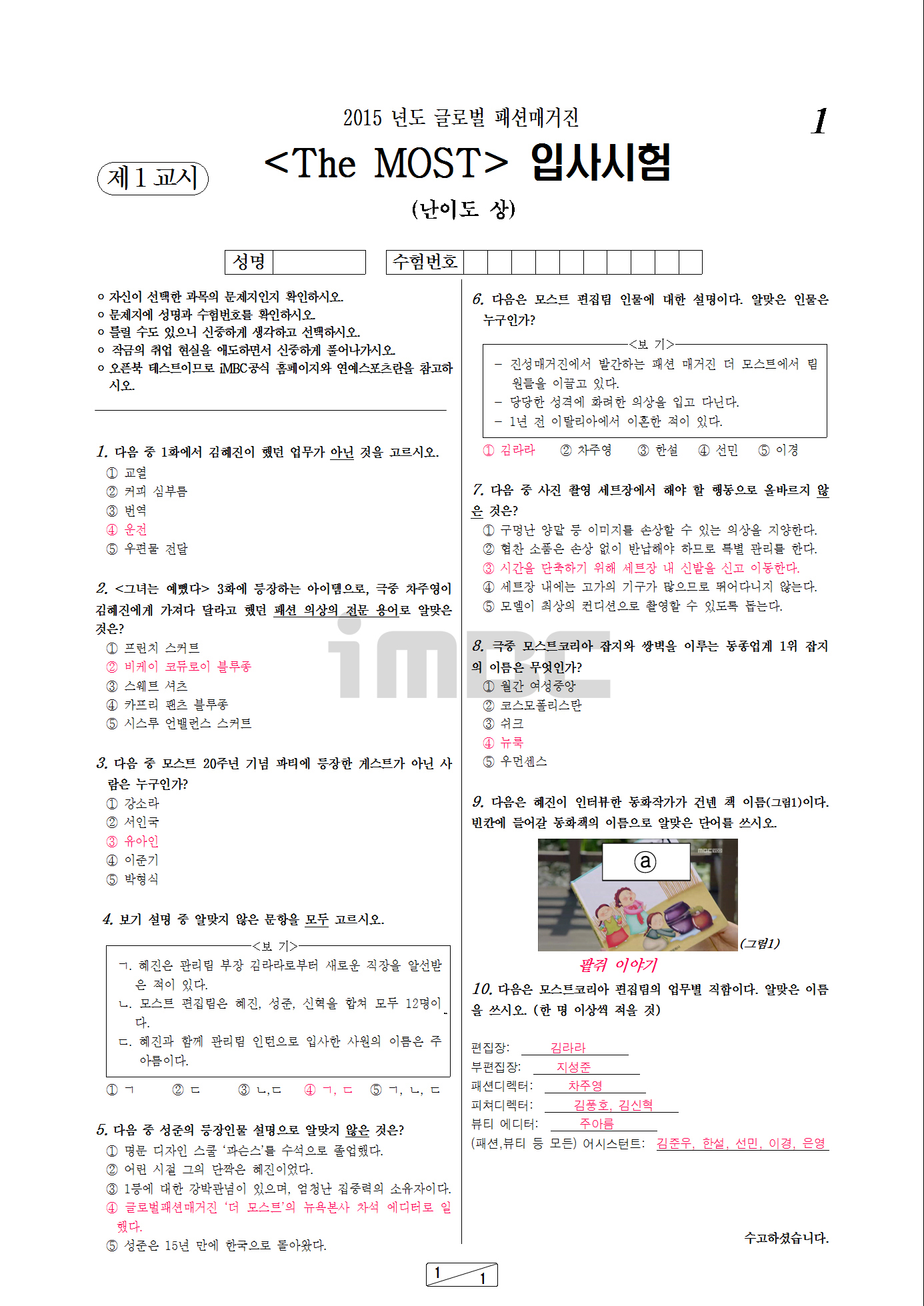 “글로벌 패션매거진 'The MOST'의 입사시험 정답을 발표합니다!”