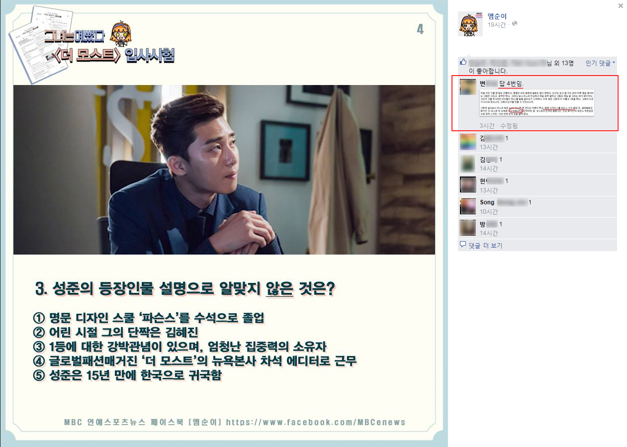 ☞ [엠순이] 페이스북에서 <모스트 입사시험> 정답자 현황 확인하기