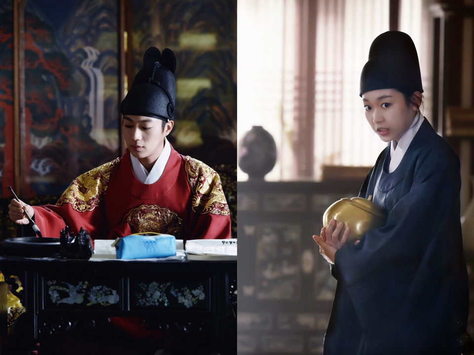 사진 속 윤두준은 평소 장난기 넘치던 모습과는 달리 근엄한 왕의 모습으로 글을 쓰고 있고, 김슬기는 요강을 들고 무엇인가에 들킨 듯 깜짝 놀란 표정을 짓고 있는 모습이 포착되었다.