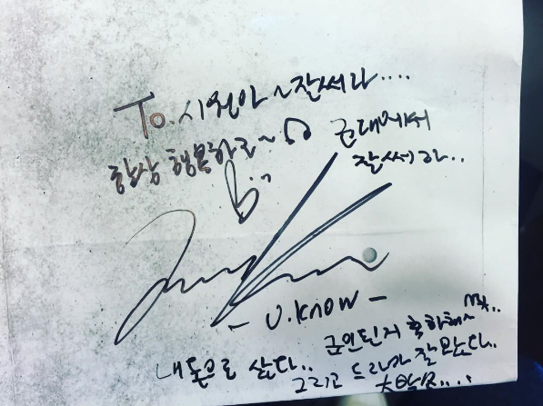 공개된 사진 속에는 군입대를 앞둔 최시원을 향한 정윤호의 깜짝 편지가 담겨있다. 그는 ‘시원아~ 잘 써라. 항상 행복하고~ (선물은) 내 돈으로 샀다. 군인된 거 축하해~’, ‘그리고 드라마 잘 봤다’라며 최시원이 열연한 <그녀는 예뻤다>를 지켜봤다는 깨알 같은 안부를 덧붙이며 웃음을 자아낸다.