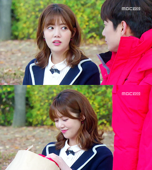 이 장면에서 정윤혜는 동그란 카라로 깜찍하게 포인트를 준 블라우스와 함께 배색 컬러 라인으로 포인트를 준 자켓을 착용했다. 여기에 정윤혜는 컬러 스톤 장식으로 포인트를 준 미니 귀걸이를 함께 착용해 스타일에 포인트를 더했다.