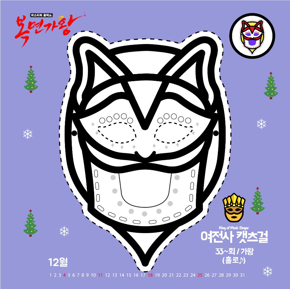 이번에 출시되는 '복면달력'은 시청자로부터 큰 사랑을 받았던 ‘화생방실 클레오파트라’, ‘노래왕 퉁키’, ‘소녀의 순정 코스모스’, ‘여전사 캣츠걸’ 등 가왕의 복면을 비롯해, 남성 취향의 ‘상감마마 납시오’, ‘죠스가 나타났다’, ‘노래하는 트리케라톱스’, 여성 취향의 ‘마실나온 솜사탕’, ‘꽃을 든 꽃게’, ‘내숭백단 호박씨’ 등 12장의 복면 캐릭터와 4장의 컬러링 가면으로 구성되어 있다.