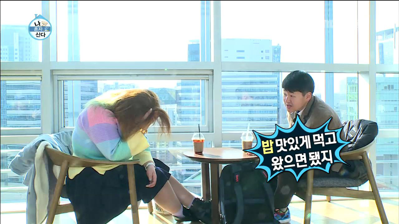 동생은 “엄마가 반찬 일곱 가지 싸줬어. 된장국, 커피, 반찬 일곱 개”라고 자랑스럽게 말했다. “그 커피 마시고 잤냐”며 혀를 차는 이국주에게 동생은 “커피 마시면 더 잠 잘 와”라고 천연덕스럽게 답했다.