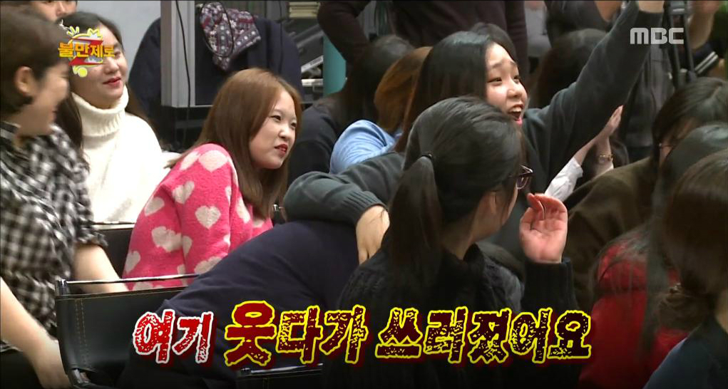12일 방송된 MBC 예능 프로그램 <무한도전>에서는 불만 제로 특집을 맞이해 방청객과 함께 녹화를 진행하는 멤버들의 모습이 그려졌다.