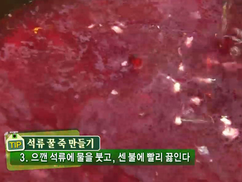 으깬 석류에 물을 붓고, 센 불에 빨리 끓여준다.