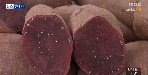 속살이 보라색인 자색 고구마는 노화방지에 효과적이지만 단맛은 적은 편이다.