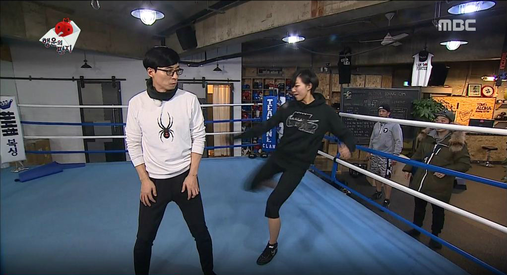 이에 정준하의 지인과 선수들은 유재석과 하하의 편지 전달을 막았고, 두 사람은 육탄전을 벌이며 편지 배달을 위해 안간힘을 썼다. 이때, '로우킥 맞고 신음 참기'라는 미션을 제안했고, 유재석은 "란주 작가에 맞아봐서 아는데 맞으면 진짜 똥싼다"고 질색했다.